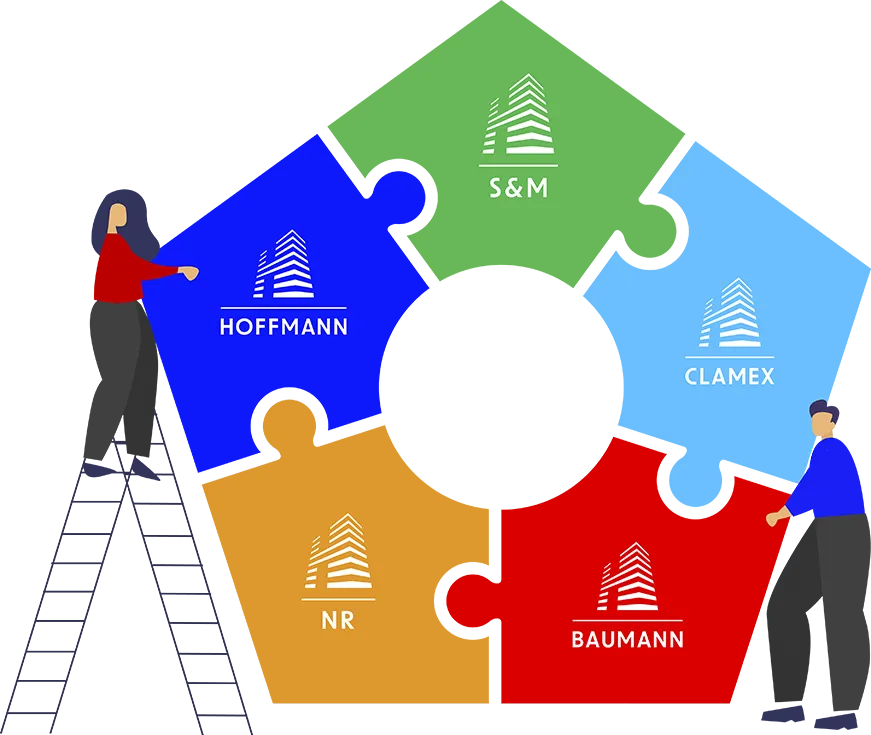 Mit Baumann Facility Services, Hoffmann Facility Services, Clamex Facility Services, S&M Facility Services und NR Facility Services vereinen fünf Unternehmen ihre Kompetenzen und Erfahrung, Expertise und Kräfte, Werte und Überzeugungen unter dem Dach der Hoffmann Group. Gemeinsam schaffen wir eine bundesweite Abdeckung mit regionaler Verwurzelung – und eine innovative, offene Unternehmenskultur von der breiten Dienstleistungspalette bis zu jedem einzelnen Menschen. Mensch und Geschäft auf Augenhöhe Auf dieser Basis leben wir Firmenalltag, treffen Entscheidungen, setzen wir uns auseinander – innerhalb der Gruppe, mit unseren Mitarbeitenden und mit unseren Kunden. Die Hierarchien sind flach, die Wege kurz, die Beziehungen persönlich und die Arbeitsatmosphäre angenehm.